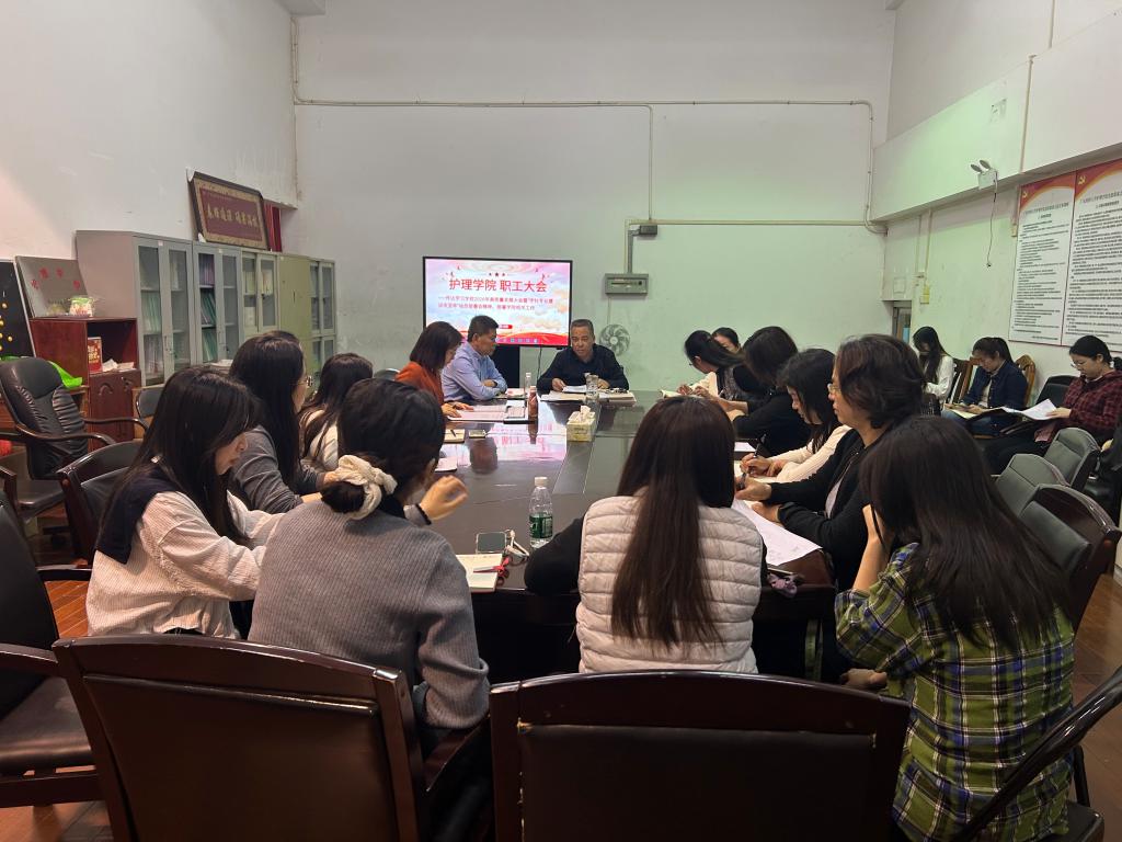 2026年3月13日,护理学院召开全院职工大会,专题传达学习学校 2026 年高质量发展大会暨“学科专业建设攻坚年”动员部署会精神,部署学院攻坚工作重点。会议由学院党委书记陈国新主持,全体教职工参会。