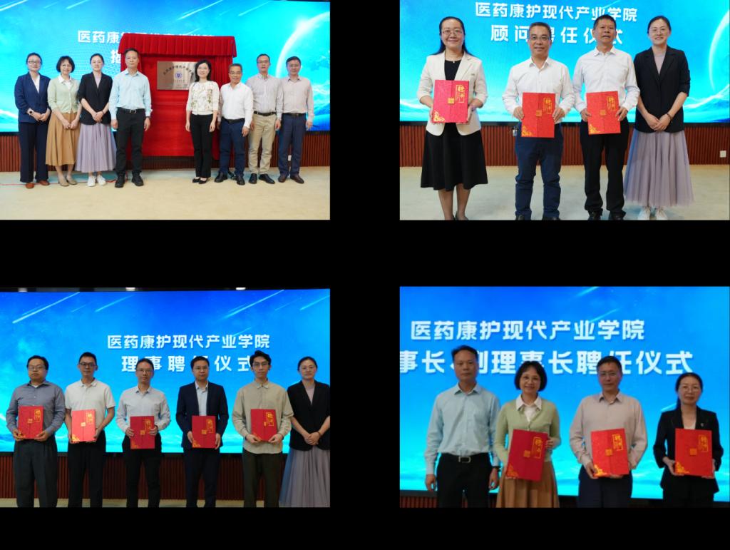 据护理学院、医药康护现代产业学院院长蓝宇涛介绍,我校医药康护现代产业学院于2025年9月正式成立,由护理学院牵头,联合医药信息工程学院、公共卫生学院共建,同时携手广东省疾病预防控制中心、广州衡必康信息科技有限公司及东莞市基层卫生机构等优质单位深度合作,形成了“校院协同、校企联动”的多元发展格局。自筹备以来,我院已先行先试、积极探索,开设“慢病医防融合数智康护微专业”,并面向各共建单位开展“人工智能赋能医防融合”产业专项培训,切实推动科学研究与产业实践深度融合、同频发展。随后,在全体与会嘉宾的共同见证下,副校长甘远洪、广东省卫生健康委政法处副处长周玮玮、广东药科大学教务部部长李晓菁等领导共同为“广东药科大学医药康护现代产业学院”揭牌,并为学院顾问、理事、理事长及副理事长颁发聘书,标志着我院正式迈入实体化运营、高质量发展的新阶段。