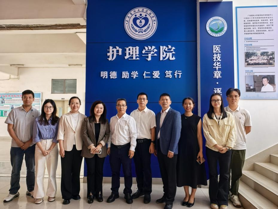 为深化校际合作、共探护理教育高质量发展路径,4月1日,我院党委书记陈国新率副书记、副院长、学院办公室负责人及辅导员一行5人赴广东医科大学护理学院开展座谈交流,广东医科大学护理学院党委书记王辉群、相关领导、学院办公室人员及辅导员热情接待我院交流团一行。