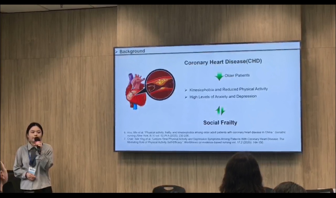 论坛设置“积极健康老龄化”和“青年学者论坛:护理界的崛起之星”两大分会坛,通过主题演讲、专题研讨、口头汇报、海报展示等丰富环节,为全球护理从业者搭建起知识共享、思想碰撞与国际合作的桥梁。在口头汇报环节,我院三名研究生分别围绕心血管健康、心脏术后护理、老龄化及衰弱领域展开深入阐述,汇报内容紧密结合论坛主题,充分展现了广药大护理专业青年学子的科研潜力与学术素养。