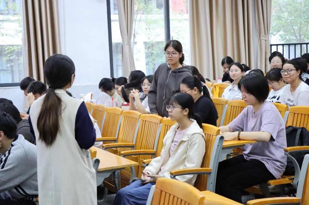 见面会伊始,叶子文老师简要介绍了个人经历,并迅速进入互动交流环节。通过现场提问,她深入了解同学们在学业提升、社团参与和职业发展等方面的具体困惑,使后续分享更具针对性,有效拉近了师生距离。